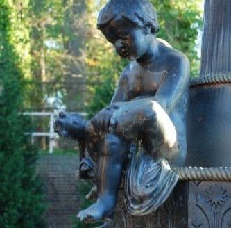 From the Anderson Downtown Historic District National Register nomination form: “This fountain was erected in 1906 as part of an overall beautification of the courthouse grounds, a project begun in 1905 by a women’s group known as the Anderson Civil Association. Constructed of iron, the fountain was made by the Anderson Machine and Foundary Company. Sixteen feet in height, the topmost figure holds an urn from which water cascades into two basins and finally into a reflection pool.”