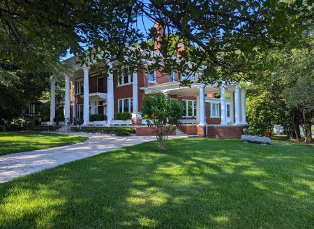George W. Summer House. Built before 1912 and remodeled about 1918, this classic revival dwelling is a brick two-story residence with flat roof and massive projecting front tetrastyle portico supported by Corinthian columns. Flanking extensions consist of a right porte cochere and left single story crested porch. The extensions are supported by Ionic colonettes. The front portico entablature displays a cornice enriched by moldings and dentils above a plain frieze. A cantilevered flat canopy surmounts the central front doorway, which is flanked by triple windows. The house was built by Mrs. L. C. Hunter and later purchased by George W. Summer (1861- 1944), Newberry merchant and organizer in 1901 of the Mollohon (cotton) Manufacturing Company. He was also owner of the Newberry Hotel, the Newberry Bonded (Cotton) Warehouse Company, the Newberry Lumber Company, and organizer of the Commercial Bank of Newberry. Architect for the remodeling was Ernest Summer, nephew of the owner.