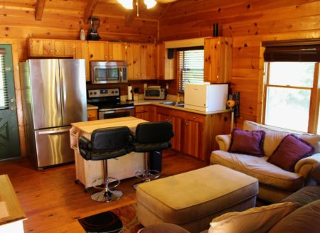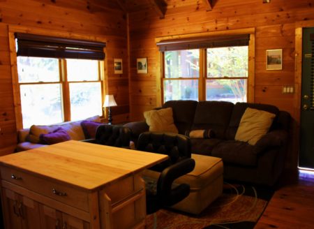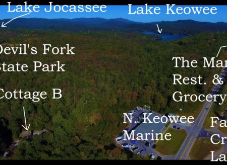 Let Mike take you on a guided tour right now–virtually! To watch the VIDEO walk-through click here now!Recreational area cottage available for nightly, short-term or long-term rental conveniently located off Cherokee Foothills Scenic Highway 11 just south of Highway 133 between Keowee Toxaway State Park and Devil?s Fork State Park. Boat landings are available with 5-minute drives at Lake Keowee Fall Creek Landing and on Lake Jocassee beside Devil?s Fork State Park. Cottage B features TV in main living area with DirecTV Satellite. It has wireless Internet access, tub/shower combination, queen size bed, love seat, sofa, full kitchen, central heat/air and eating area. Less than 2 minute drive to supermarket, shopping and restaurant. Listen to flowing creek from rocking chair front porch. Cottage sleeps 3. Rates: $75 night; $450 week; $700/month. Rates exclude TV DirecTV satellite service, wireless Internet access, power and water for long term rental..Click here to go to Scenic Hwy 11 Cottages Page Call Mike Roach, Realtor/Co-Owner, Top Guns Realty, for details – toll free 866-371-2911.