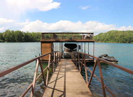 Let Mike take you on a guided tour right now–virtually! To watch the AERIAL VIDEO click here now! To watch the VIDEO walk-through click here now! LOOK ABOVE Call Mike Roach, Realtor/Co-Owner, Top Guns Realty, for details – toll free 866-371-2911. A rustic 4 bedroom 4 bath home located only 45 minutes from Main St Greenville, 20 minutes to Clemson and 15 minutes to Seneca. It features an open floor plan, abundance of outdoor deck space for entertaining, 2 stone fireplaces, hardwood and tile floors and granite counter tops. You have a double decker dock over 20 feet deep water and 183 feet of shoreline. Very natural landscape that is easy to maintain.Click here to go to Outerbanks Subdivision Page